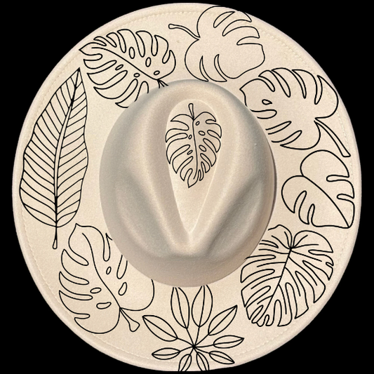 Monstera Leaf Wide Brim Hat Burning Design SVG PNG