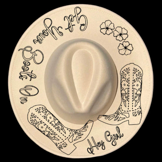 Get Your Boots On Wide Brim Hat Burning Design SVG PNG