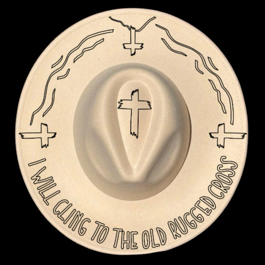 Old Rugged Cross Wide Brim Hat Burning Design SVG PNG