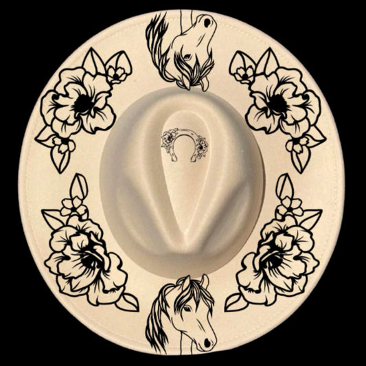 Pony And Posies Wide Brim Hat Burning Design SVG PNG