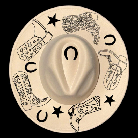 Cowgirl Boots And Stars Wide Brim Hat Burning Design SVG PNG