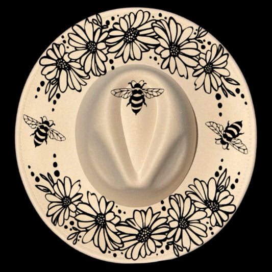 Daisy And Bee Wide Brim Hat Burning Design SVG PNG