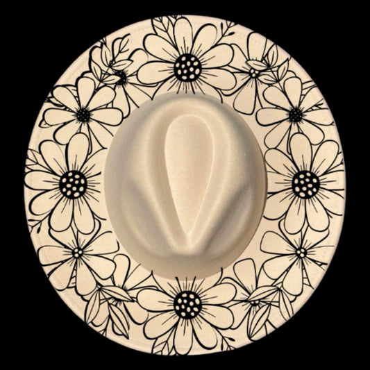 Daisy Wreath Wide Brim Hat Burning Design SVG PNG