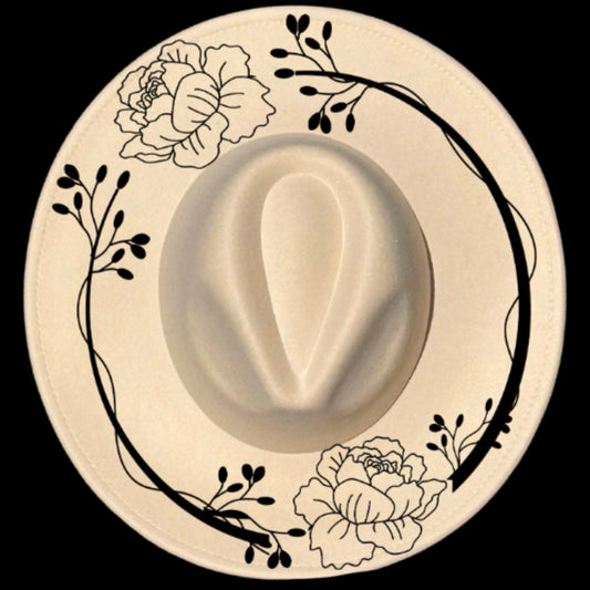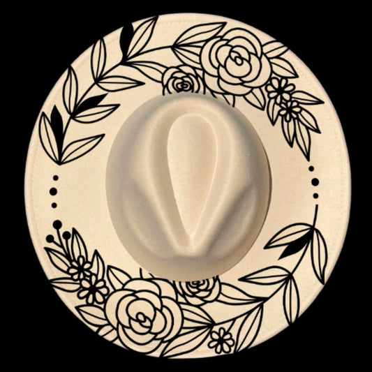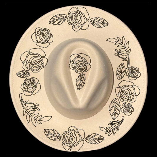 Floral Rose Wide Brim Hat Burning Design SVG PNG