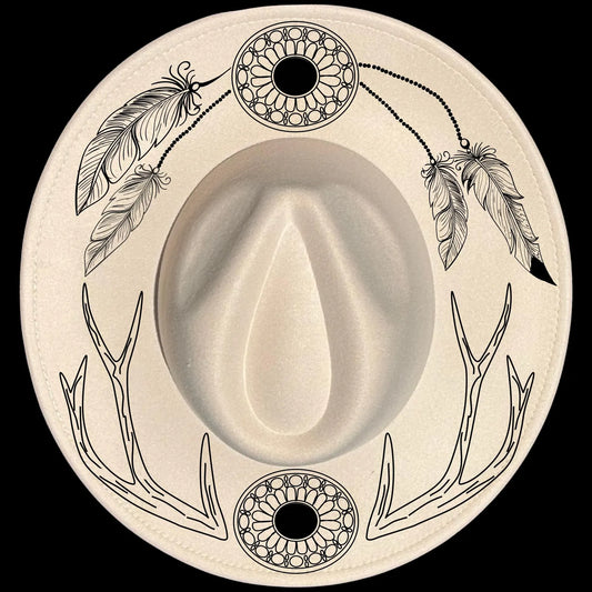 Antlers And Feathers Wide Brim Hat Burning Design SVG PNG JPG