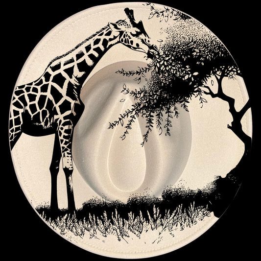 Whimsical Giraffe Wide Brim Hat Burning Design SVG PNG
