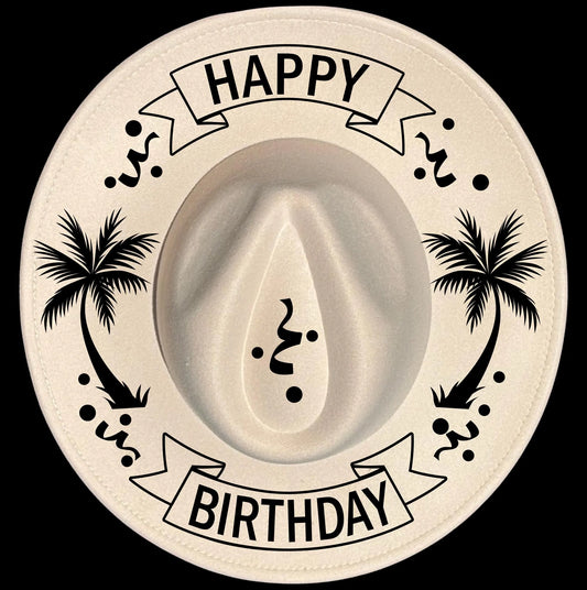 Happy Birthday Wide Brim Hat Burning Design SVG PNG
