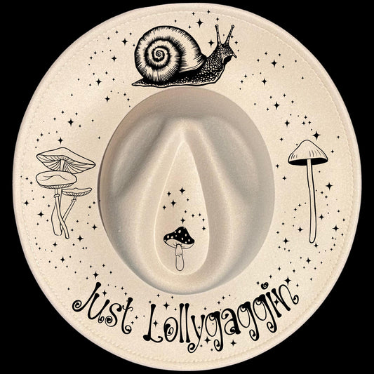 Just Lollygaggin Wide Brim Hat Burning Design SVG PNG