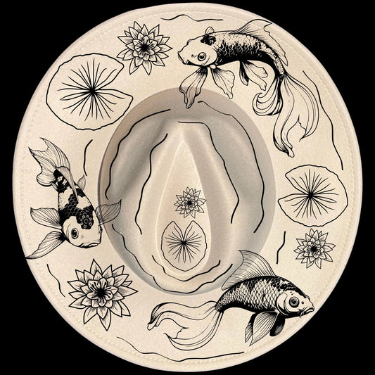 Koi Fish Wide Brim Hat Burning Design SVG PNG