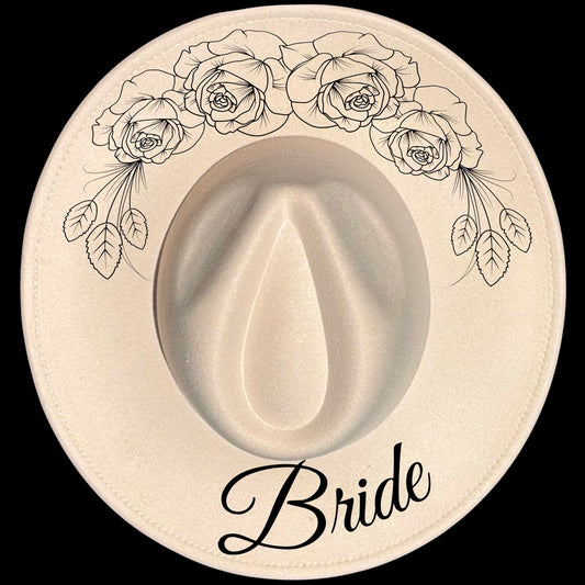 Bride And Bridesmaid Vintage Rose Wide Brim Hat Burning Design SVG PNG