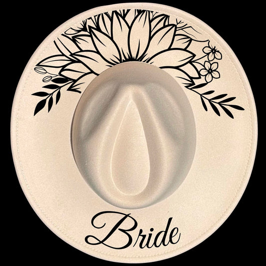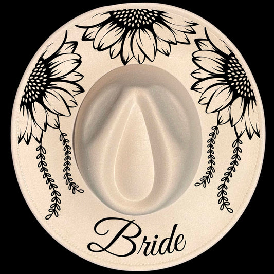 Bride And Bridesmaid Large Sunflower Wide Brim Hat Burning Design SVG PNG