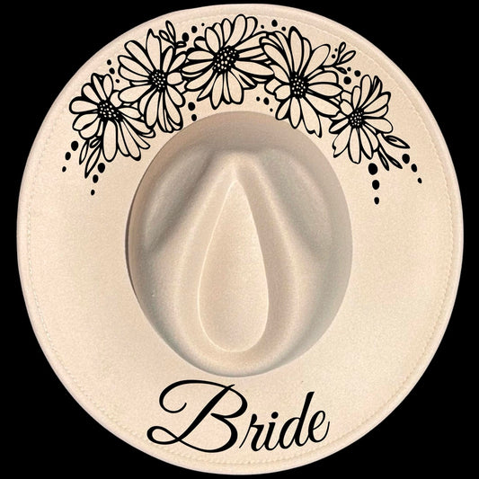 Bride And Bridesmaid Daisy Wide Brim Hat Burning Design SVG PNG