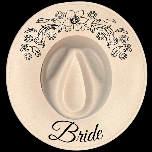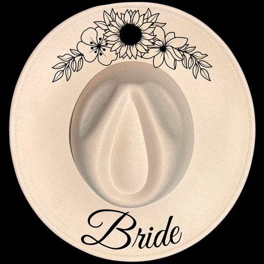 Bridesmaid Floral Wide Brim Hat Burning Design SVG PNG