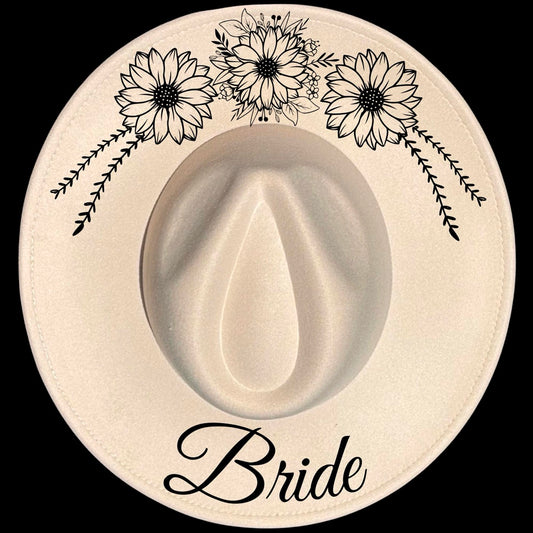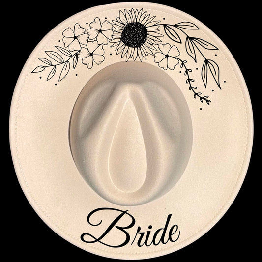 Bride And Bridesmaid Sunflower Floral Wide Brim Hat Burning Design SVG PNG