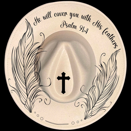 Covered By His Wings Wide Brim Hat Burning Design SVG PNG