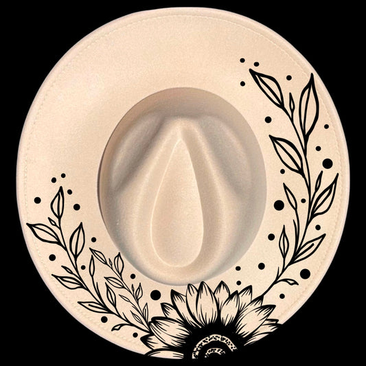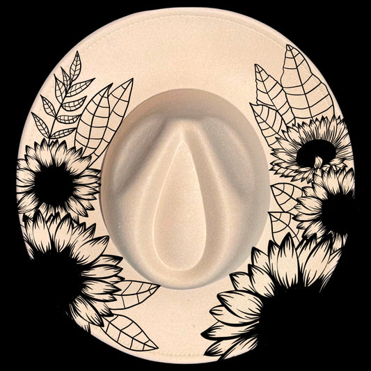 Sunflower Leaves Wide Brim Hat Burning Design SVG PNG