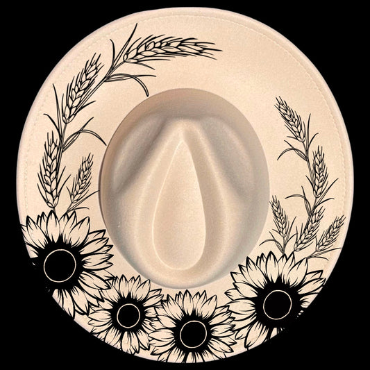 Sunflower Wheat Wide Brim Hat Burning Design SVG PNG