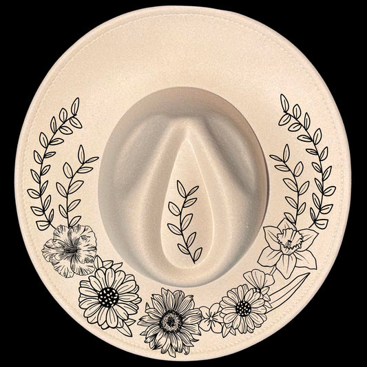 Bouquet Spray Wide Brim Hat Burning Design SVG PNG