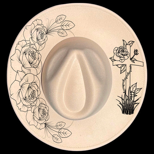 Cross And Roses Wide Brim Hat Burning Design SVG PNG