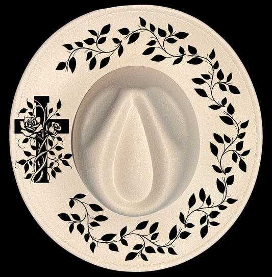 Cross Vine Wide Brim Hat Burning Design SVG PNG