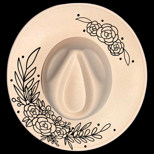 Rose Spray Wide Brim Hat Burning Design SVG PNG