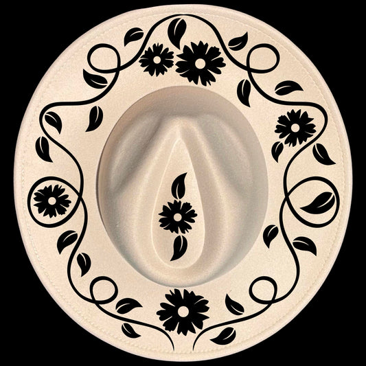 Black Vine And Flowers Wide Brim Hat Burning Design SVG PNG