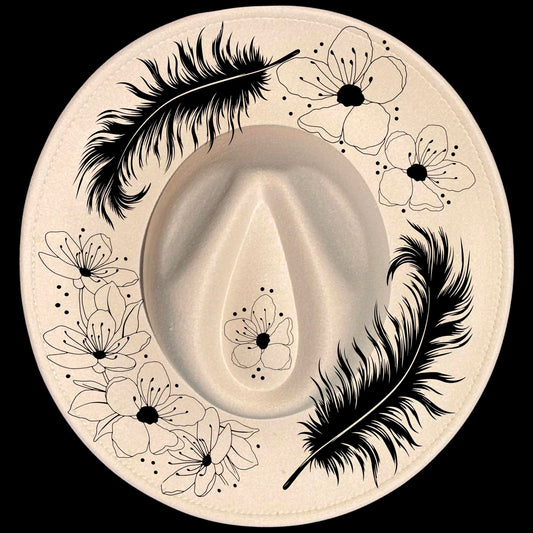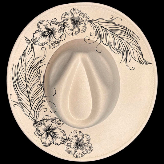 Flowers And Feathers Wide Brim Hat Burning Design SVG PNG