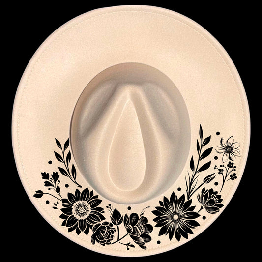 Flowers And Vine Wide Brim Hat Burning Design SVG PNG