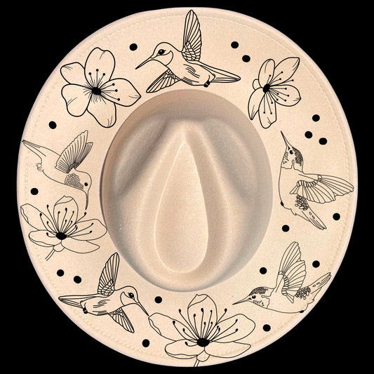 Hummingbirds And Cherry Blossoms Wide Brim Hat Burning Design SVG PNG