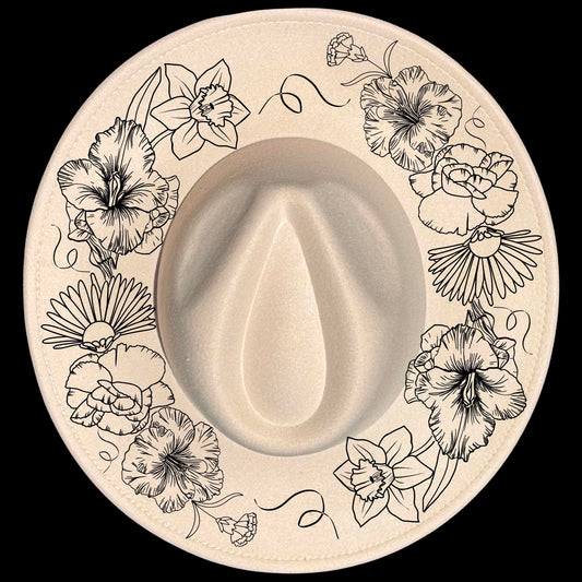 Spring Flowers Wide Brim Hat Burning Design SVG PNG