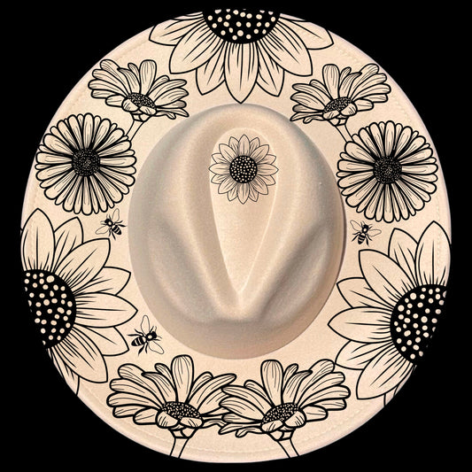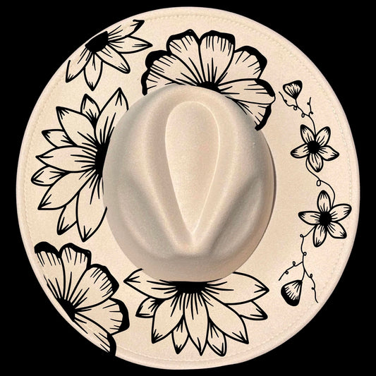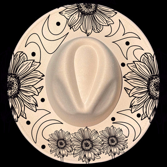 Sunflowers n Daisies Wide Brim Hat Burning Design SVG PNG