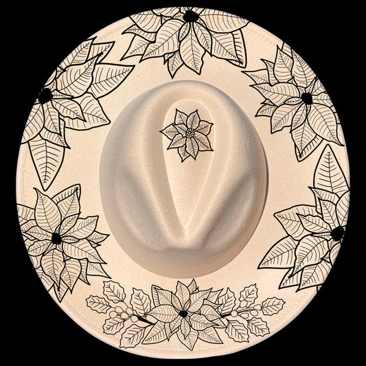 Poinsettia Wreath Wide Brim Hat Burning Design SVG PNG