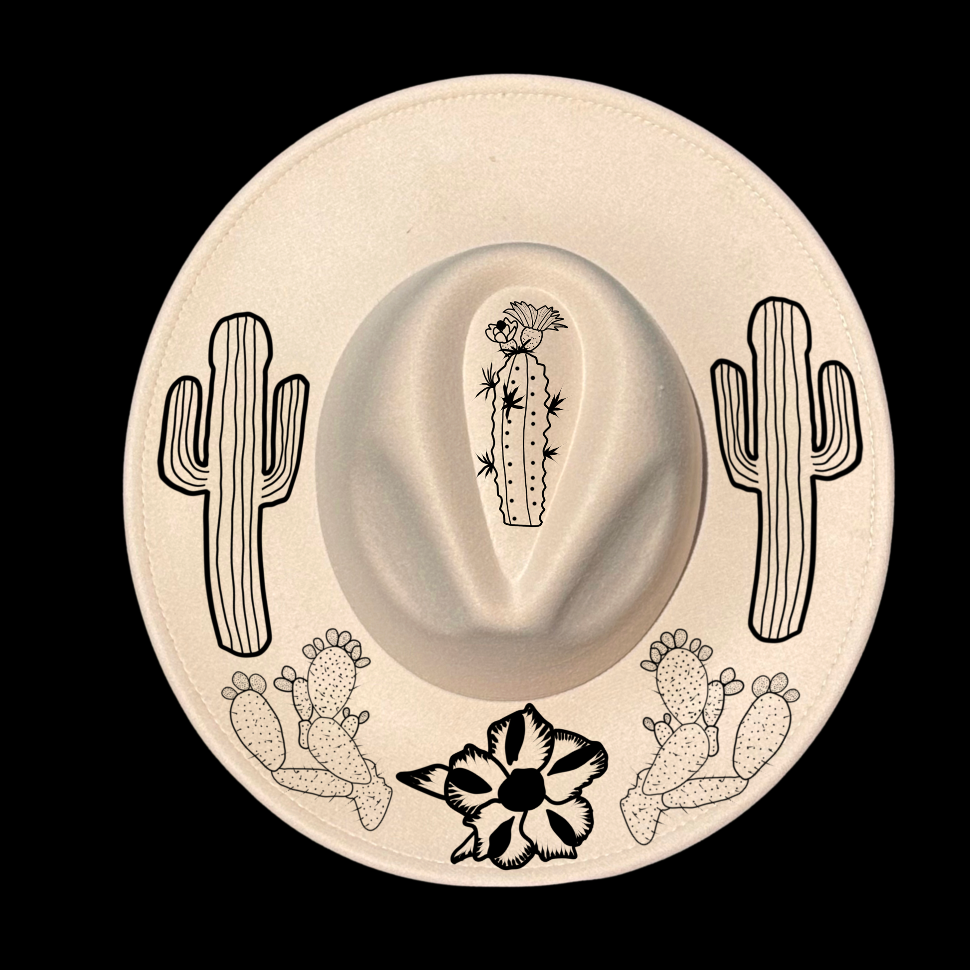 Desert Cactus Rose Wide Brim Hat Burning Design SVG PNG
