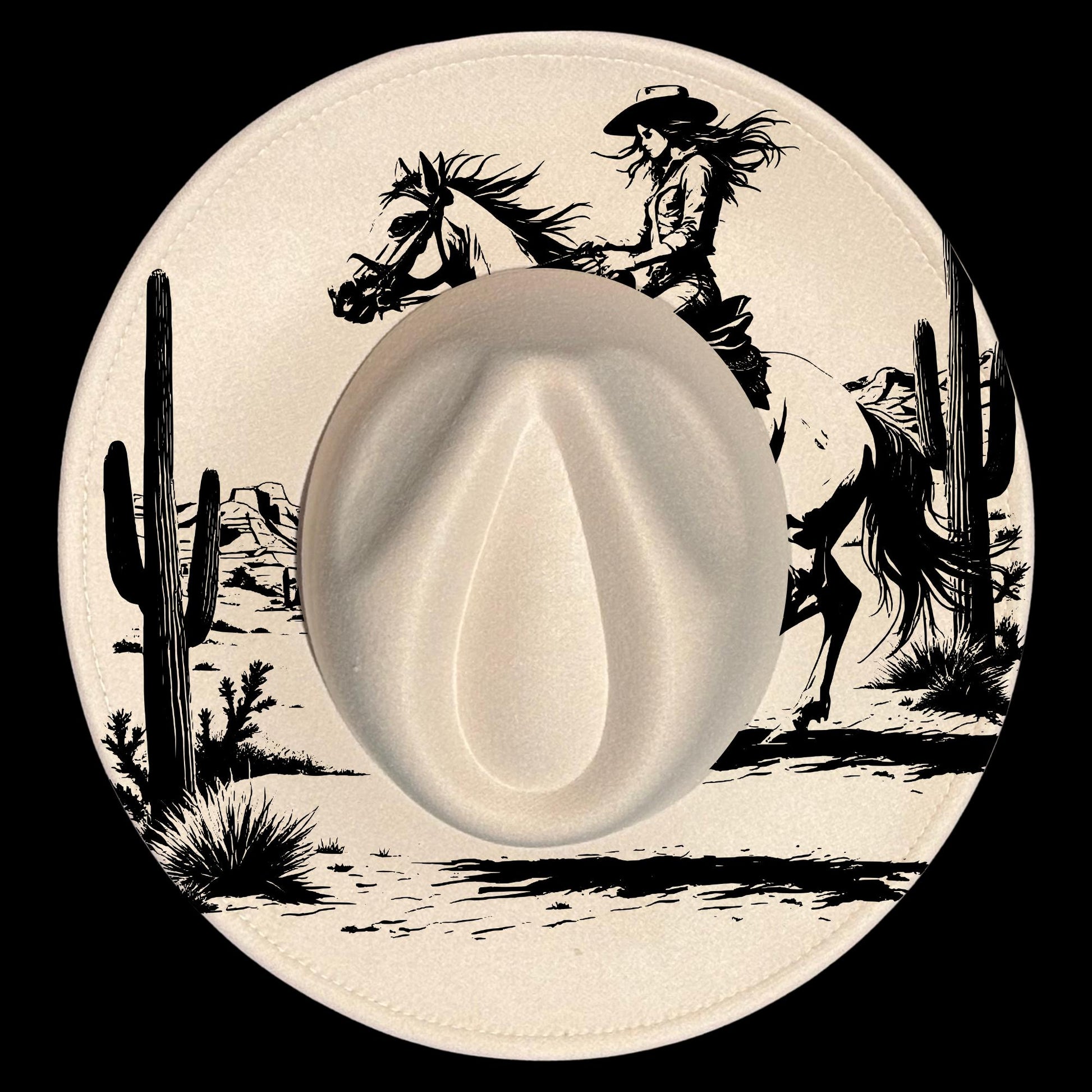 Desert Cowgirl Hat Burning Design | Wide Brim | Cool Moon Designs