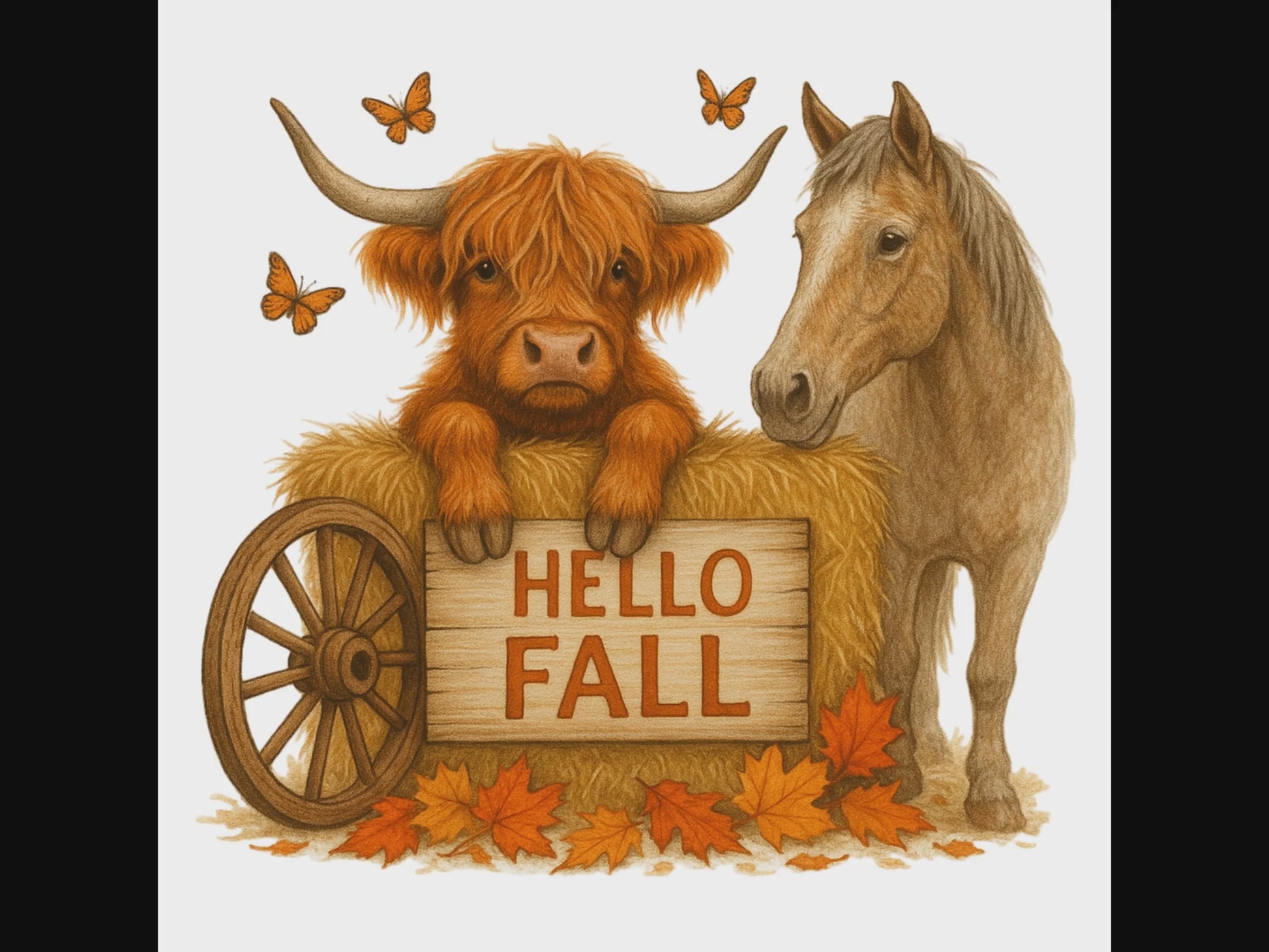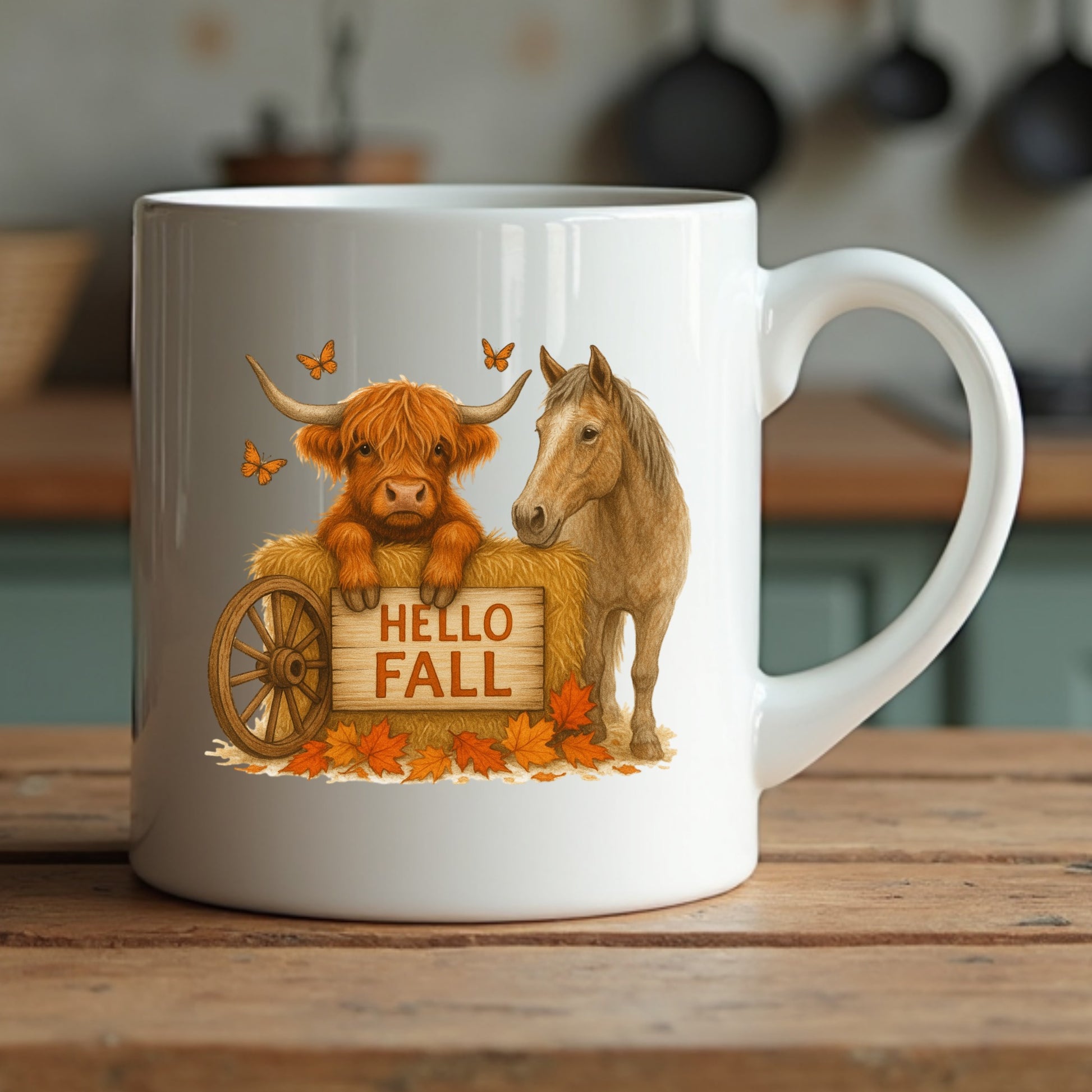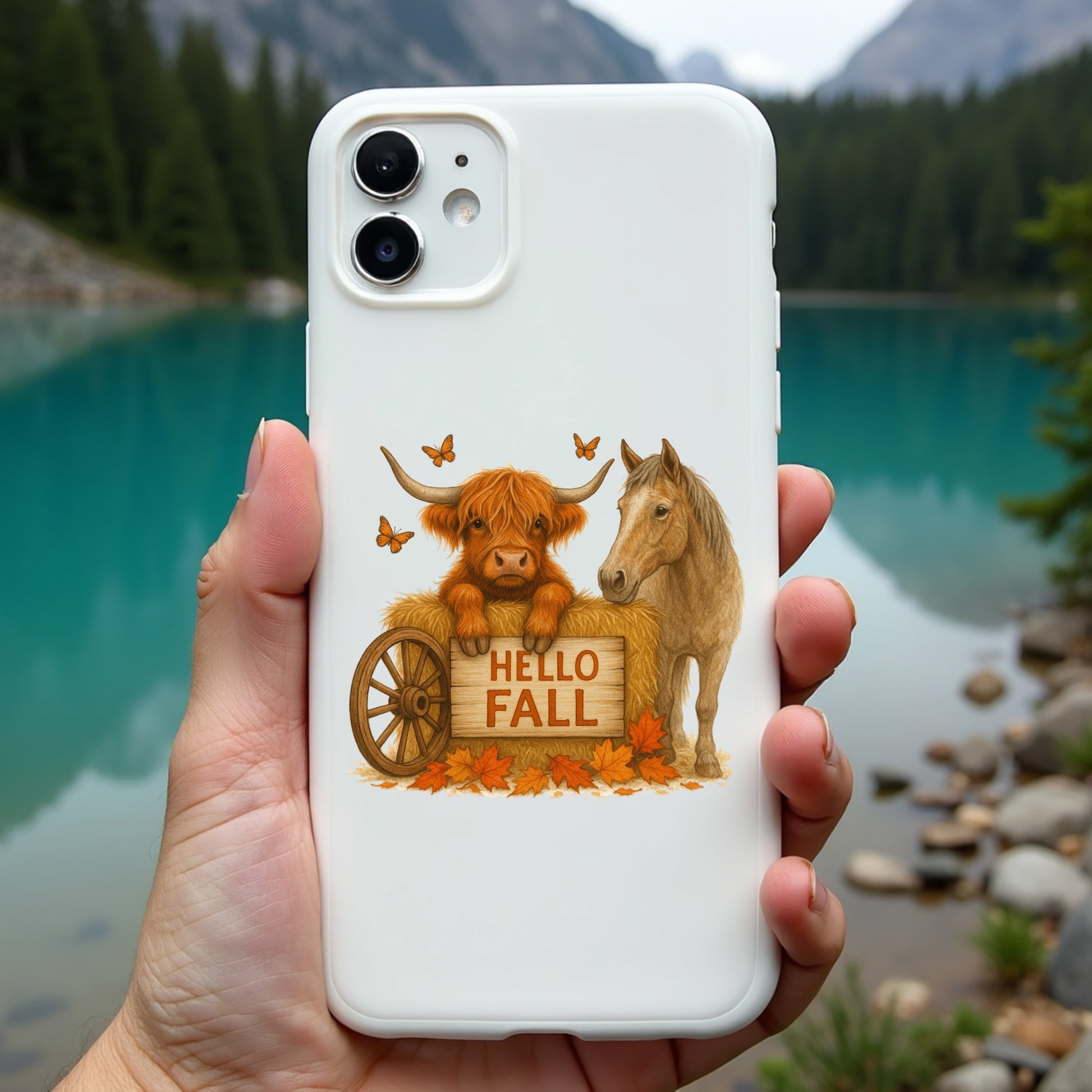 Hello Fall PNG, Fall Clipart, Cow PNG, Horse PNG, Fall Digital, Sublimation PNG, Digital Download