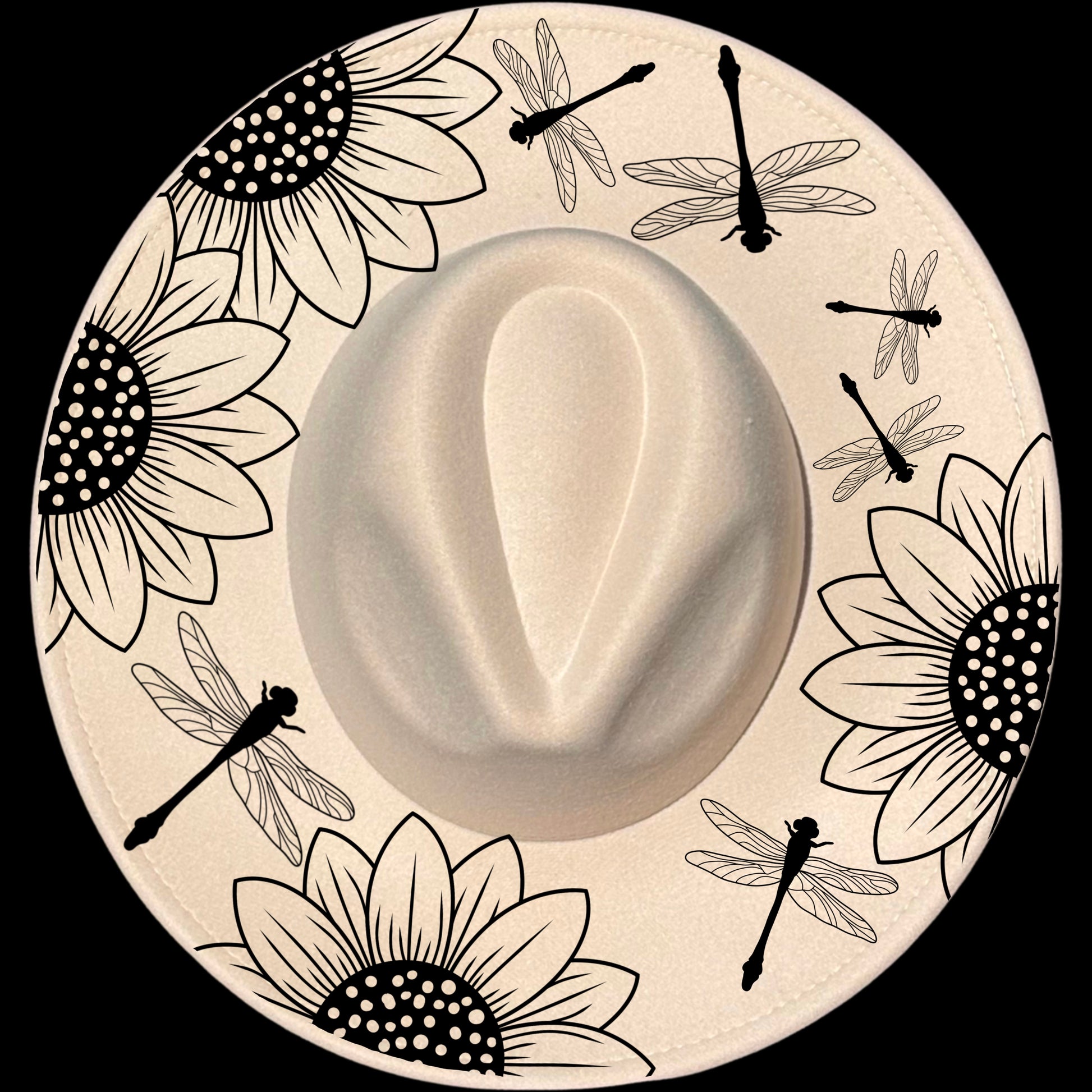 Sunflower Dragon Fly Wide Brim Hat Burning Design SVG PNG